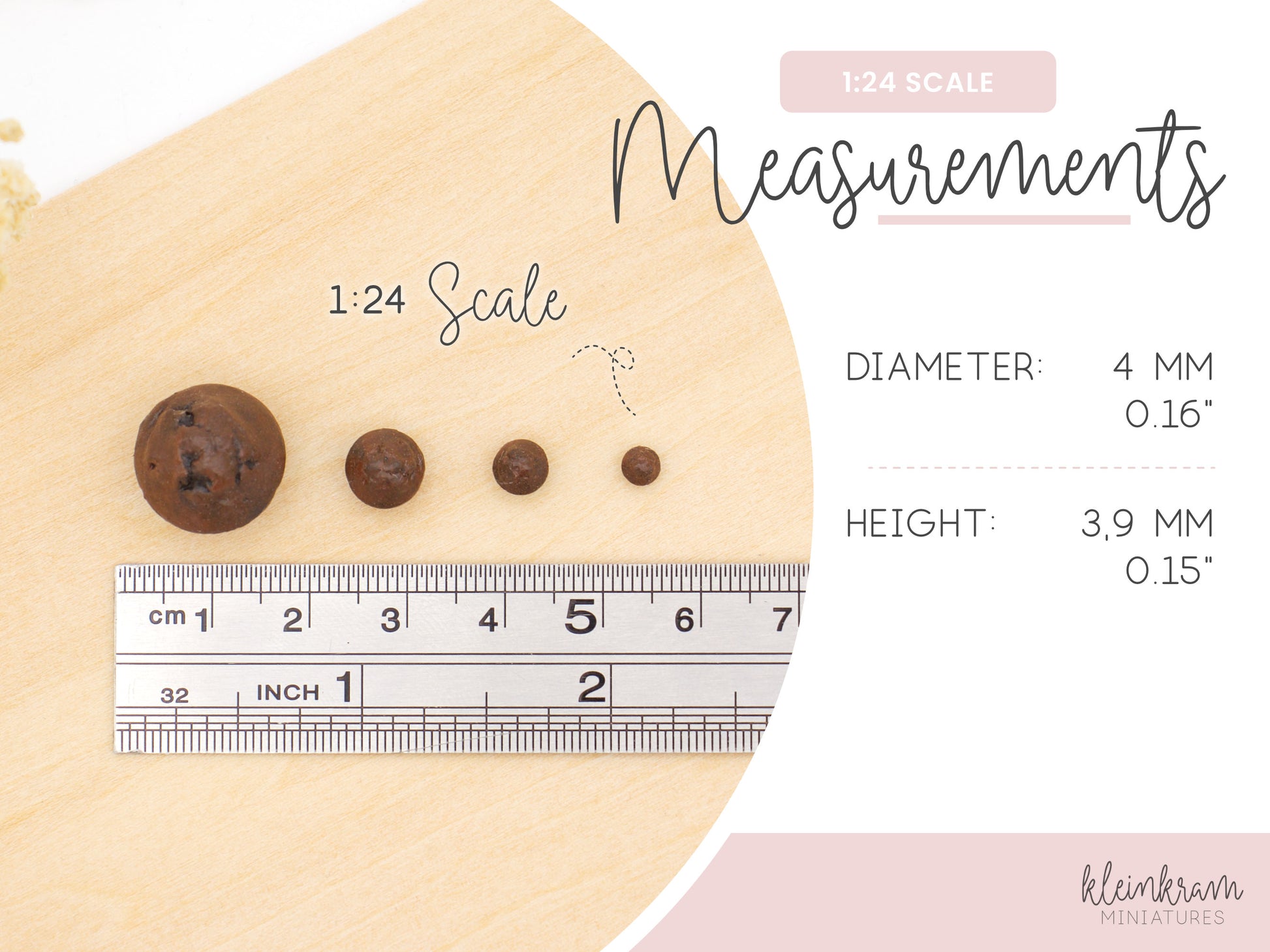Bring a sweet miniature treat to your Doll's house, miniature bakery or roombox with our set of 3 miniature muffins in 1:24 scale (half inch scale). The muffins bring an authentic, cosy café atmosphere to any miniature kitchen or sales counter. Ideal for decorating and designing a modern dollhouse bakery, a trendy café or an inviting kitchen scene on a scale of 1:24.