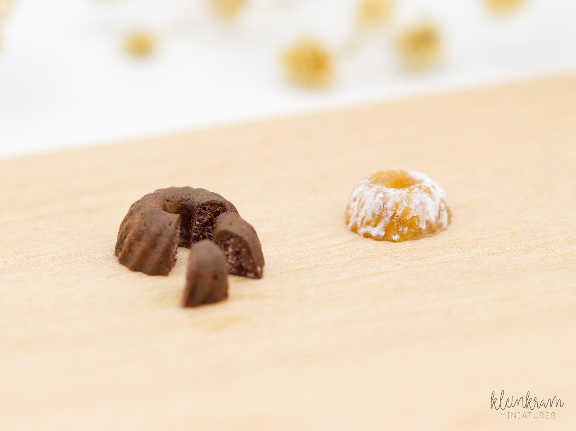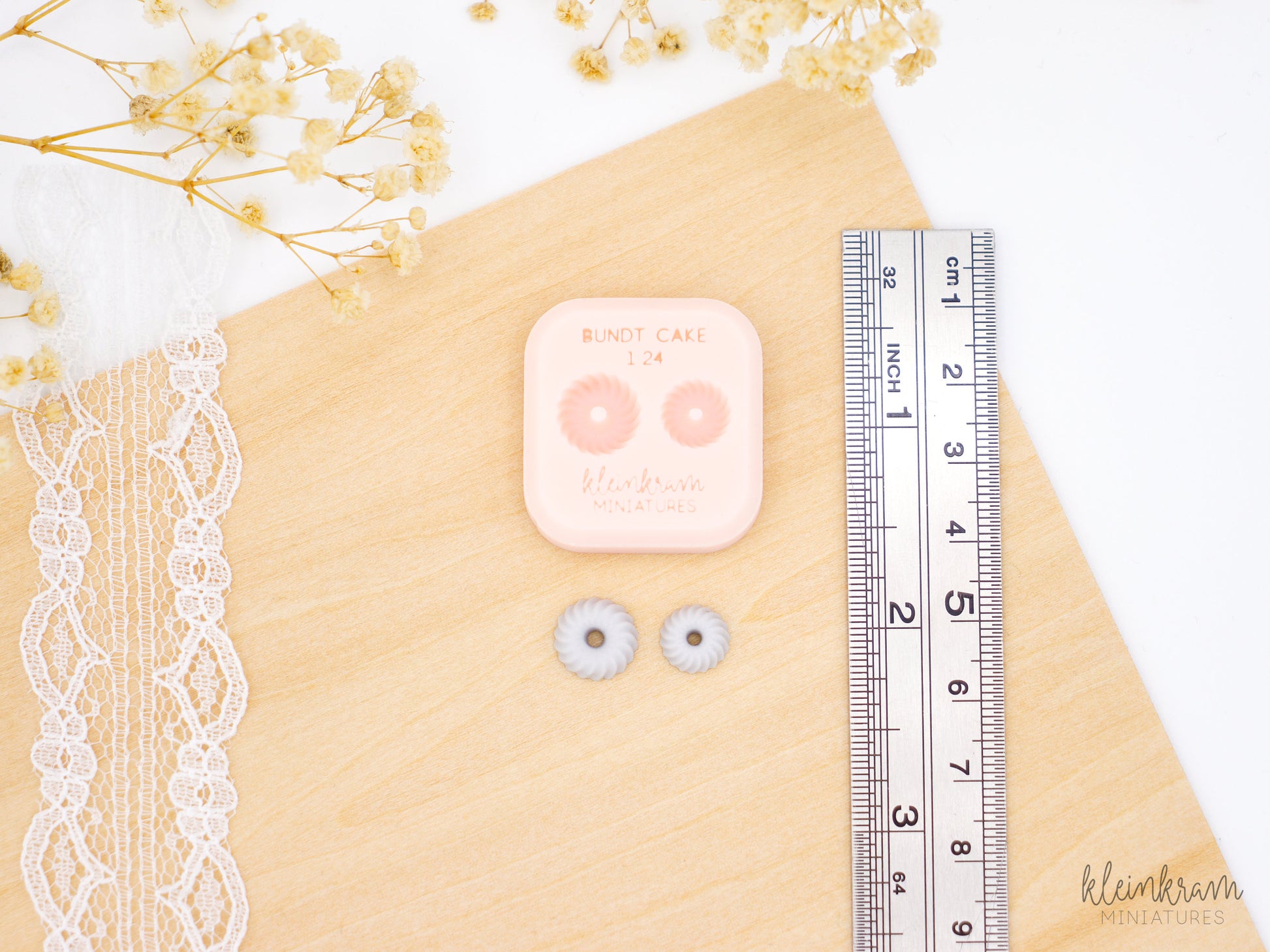 Mit dieser Silikonform können mittels Modelliermassen wie Fimo® ein Gugelhupf in zwei Größen passend für den Maßstab 1:24 hergestellt werden. Sie sind maßstabsgetreu und haben einen Durchmesser von ca. 10 mm bzw. 8,5 mm.