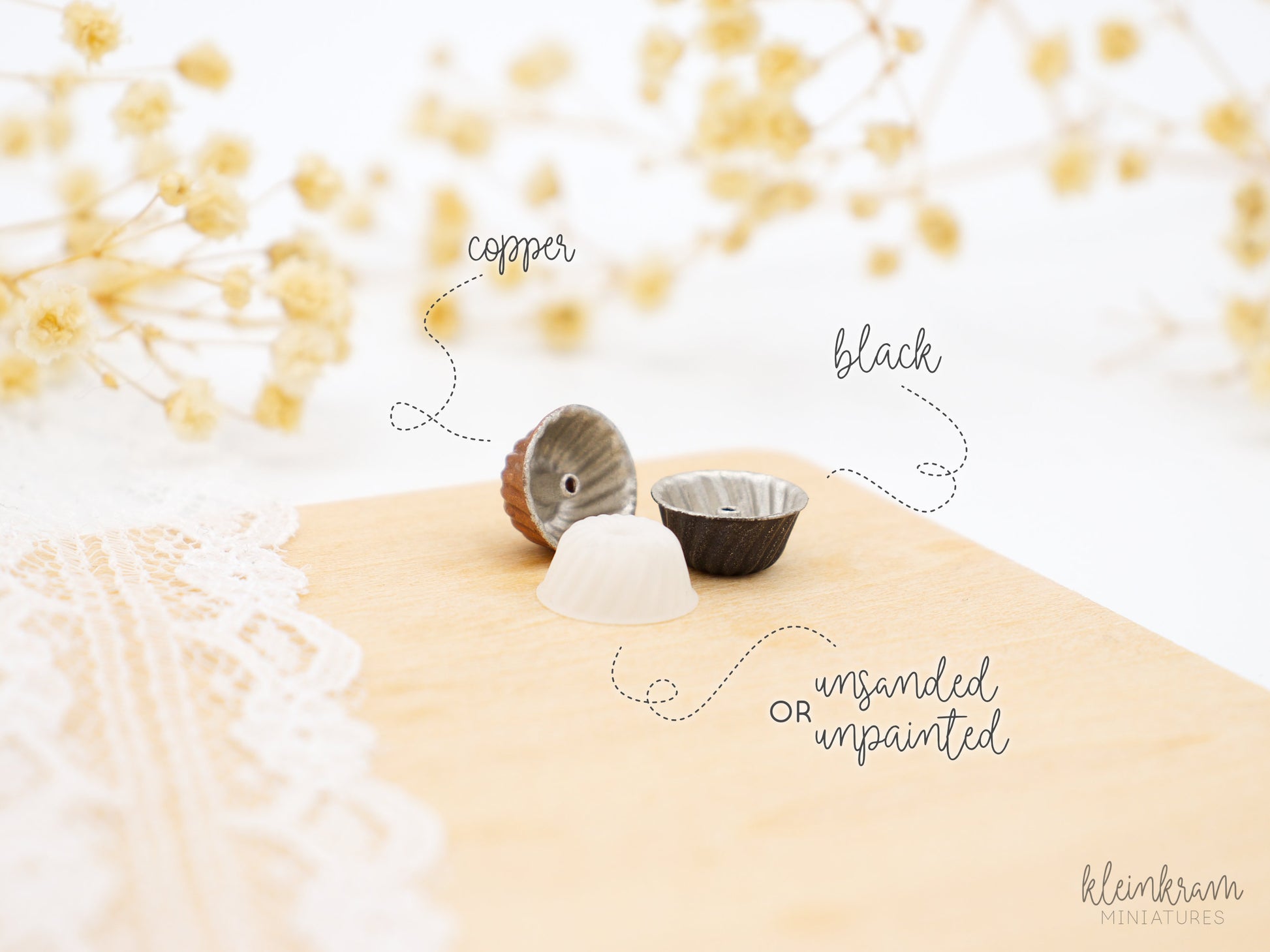 Ergänze deine Miniaturküche mit unserer detailgetreuen Miniatur Gugelhupfform im Maßstab 1:24 (half inch scale). Diese kleine Napfkuchenform ist das perfekte Zubehör für alle Miniatur- und Puppenstuben-Enthusiasten, die eine authentische Backatmosphäre in ihrer kleinen Puppenstube schaffen möchten. Ideal zum Ergänzen von köstlichen Miniaturkuchen in deinem Puppenhaus.